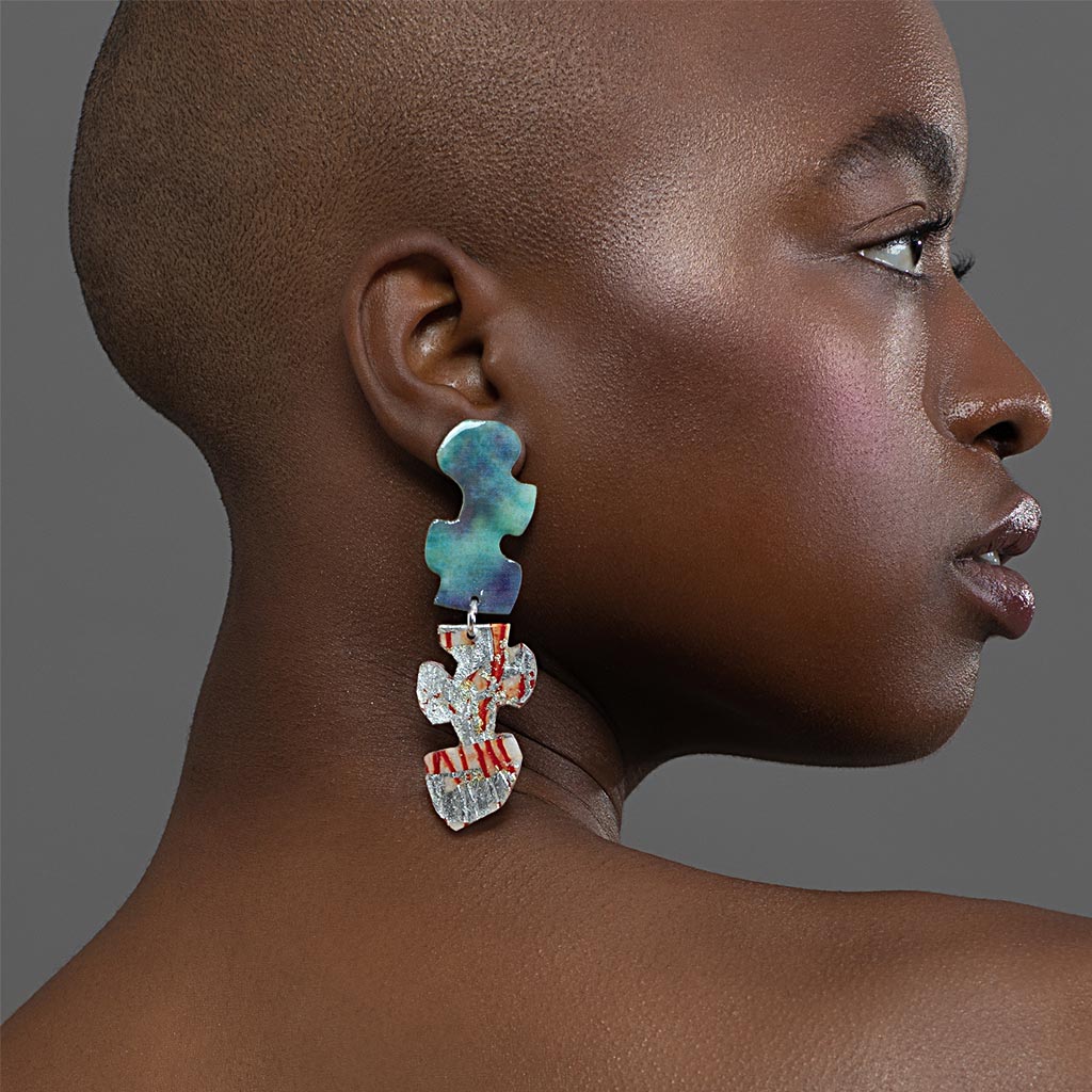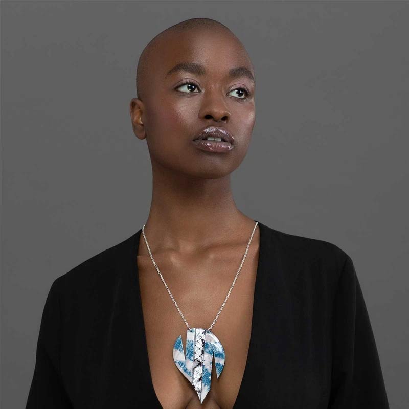 Our jewellery is patterned using Batik, Sgraffito and Shibori processes. In short, these are all resist techniques.