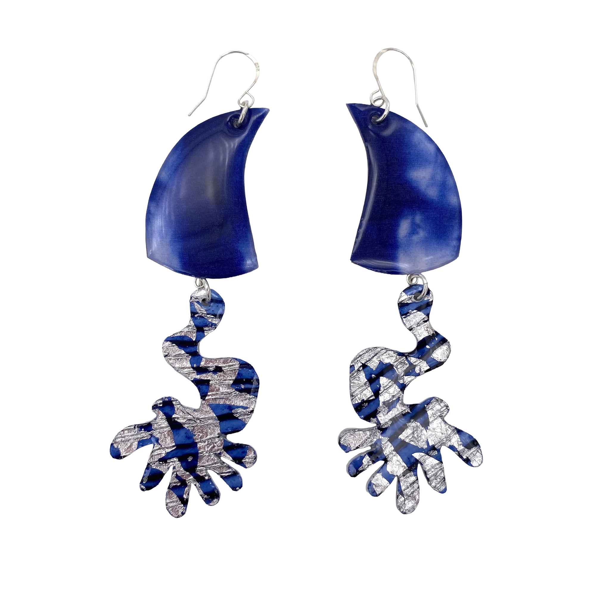 Rorqual sgraffito & shibori silk earrings in electric-blue/periwinkle/silver